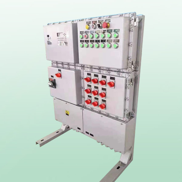 2.外殼采用鑄鋁合金壓鑄成型,表面噴塑。主腔采用隔爆型結構,接線腔增安型結構。內可選配裝斷路器、交流接觸器、熱繼電器、變壓器、熔斷器、Ex防爆控制按鈕、信號燈、轉換開關等。配電箱采用模塊化設計,各種回路可以自由組合,電器元件選型可由用戶而定,其結構緊湊、外形美觀。進出線采用鋼管或電纜布線均可,進出線口方向可由用戶要求而定。